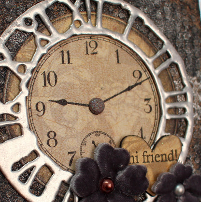 Con una tinta de secado lento o híbrida, humedece y estampa tu sello favorito, después cubre con tus polvos de embossing, no escatimes, permite que se cubra todo muy bien. Estos se pegarán únicamente a la tinta, después sacude todo el restante sobre una charola Tray Mate. Y ahora con una pistola de aire caliente (heat gun o heat tool), funde los polvos y listo, obtienes un acabado realzado, muy parecido a la serigrafía.
