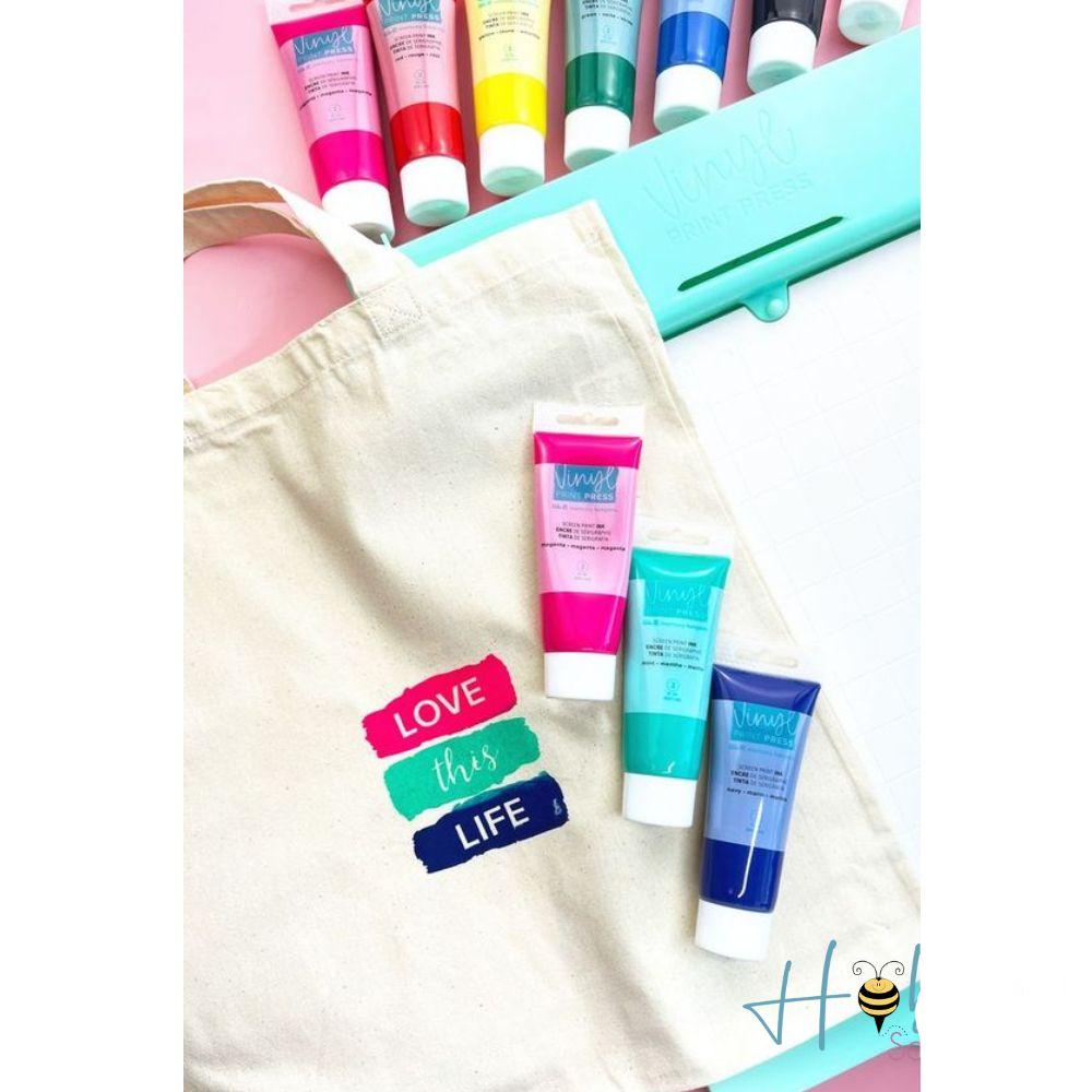¡Convierte fácilmente cualquier corte de diseño en tu máquina de corte electrónica en una serigrafía con la prensa de impresión de vinilo de We R Memory Keepers! Usa tintas de serigrafía coloridas para hacer que tus diseños sean brillantes y únicos.